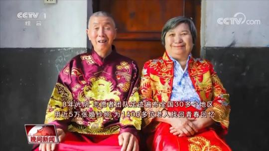 央視網(wǎng)消息:在湖北武漢工程科技學(xué)院,有一支師生自發(fā)組織的志愿者團隊,名為“圓夢計劃”。8年來,這些年輕人走遍全國30多個地區(qū),用近5萬張婚紗照,為1400多位老人找回了曾經(jīng)的青春回憶,也記錄下了滄桑歲月后最美的愛情圖景。