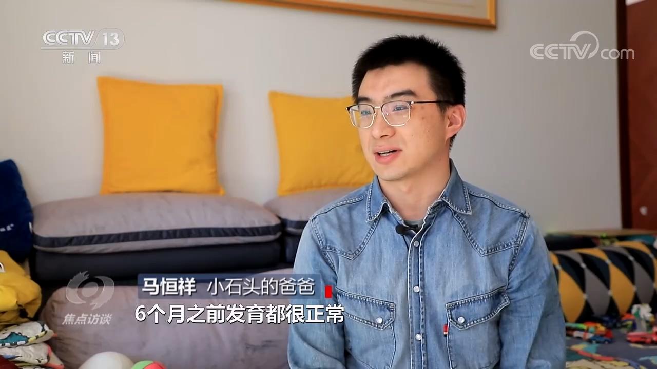小石頭的爸爸馬恒祥:“6個(gè)月之前發(fā)育都很正常,像抬頭、翻身、坐都沒有問題,但是在8個(gè)月左右的時(shí)候,發(fā)現(xiàn)他的腿在躺著的時(shí)候不會(huì)動(dòng)了,坐也坐不住了?!?/p>