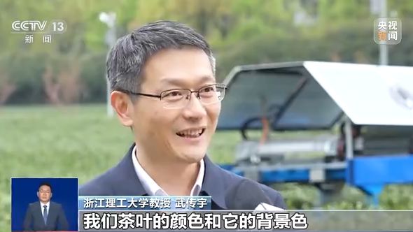 浙江理工大學(xué)教授 武傳宇:那么這個(gè)最大的問(wèn)題是在于,我們茶葉的顏色和它的背景色幾乎是一樣的,它沒(méi)有明顯區(qū)分。另外一個(gè)的話呢,這個(gè)目標(biāo)是非常小的,我們最小的采摘的一個(gè)點(diǎn)的話呢,只有2個(gè)毫米左右。還有一個(gè)的話呢,我們茶園的這個(gè)綠地,有可能在山坡上,在平整地上的相對(duì)會(huì)少一些。