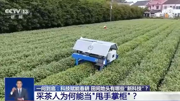 農(nóng)業(yè)科技的運(yùn)用打開(kāi)了種田人的新空間,我們?cè)偃ゲ刹鑸@看看。眼下,正是春茶采摘旺季,各地的茶農(nóng)都在忙著采摘茶芽。不過(guò)您知道嗎?現(xiàn)在采茶人也能當(dāng)“甩手掌柜”了。為了幫助茶農(nóng)提產(chǎn)增收,當(dāng)?shù)芈?lián)合高校機(jī)器人團(tuán)隊(duì),經(jīng)過(guò)不斷嘗試、改進(jìn),研發(fā)出了自主識(shí)別茶樹(shù)芽葉的智能采茶機(jī)器人。跟隨記者的鏡頭,一起去浙江杭州的茶園里看看。