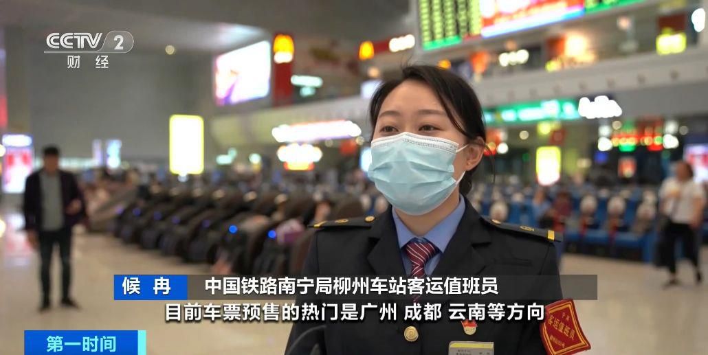 中國(guó)鐵路南寧局柳州車(chē)站客運(yùn)值班員 候冉:目前車(chē)票預(yù)售的熱門(mén)是廣州、成都、云南等方向。預(yù)計(jì)整個(gè)五一假期,柳州站增加南寧、賀州等方向6趟車(chē)。