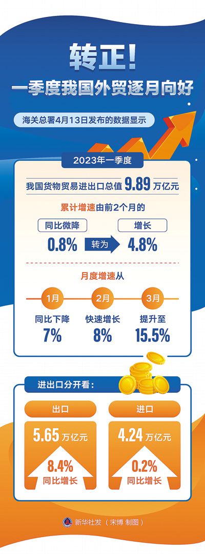 -7%、8%、15.5%,一季度3個月份,中國外貿(mào)跑出了進(jìn)出口增速的向上曲線,也跑出了復(fù)雜背景下全年保穩(wěn)提質(zhì)的篤定和信心。