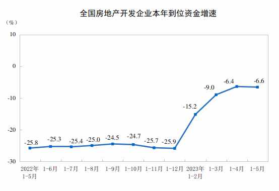 1—5月份,房地產(chǎn)開發(fā)企業(yè)到位資金55958億元,同比下降6.6%。其中,國內(nèi)貸款7175億元,下降10.5%;利用外資13億元,下降73.5%;自籌資金16267億元,下降21.6%;定金及預(yù)收款19878億元,增長4.4%;個(gè)人按揭貸款10354億元,增長6.5%。