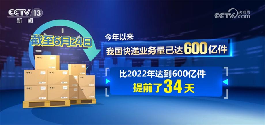 國(guó)家郵政局?jǐn)?shù)據(jù)顯示,截至6月24日,今年以來(lái)我國(guó)快遞業(yè)務(wù)量已達(dá)600億件,比2022年達(dá)到600億件提前了34天。