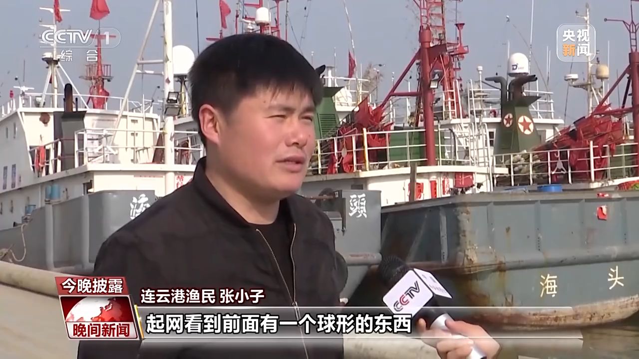 連云港漁民 張小子:起網看到前面有一個球形的東西,也不知道什么,就撈上來一看,上面還有外國字。講座說撿到有外國可疑的裝置,可以上交,我們船上有衛(wèi)星電話,打電話聯(lián)系,國家還給了獎勵。