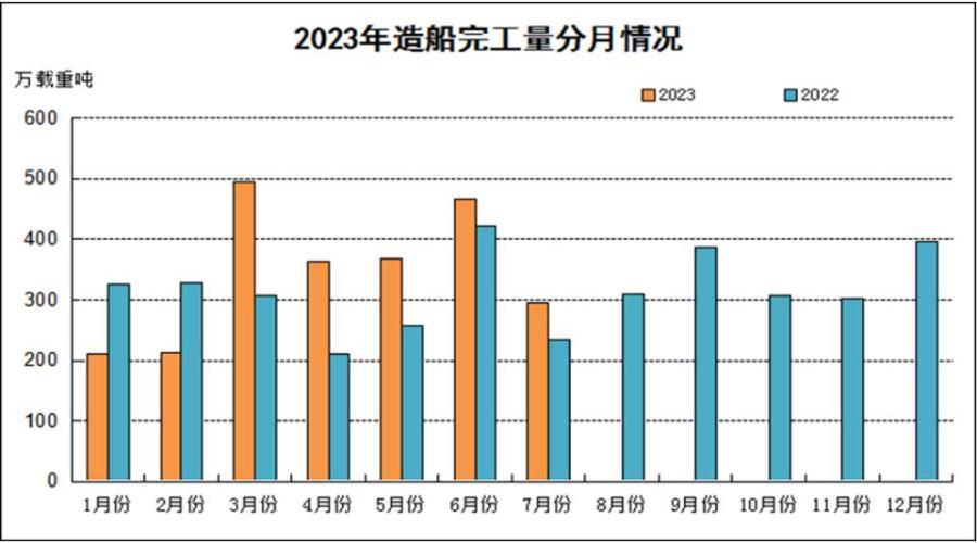 1-7月全國造船完工2409萬載重噸 同比增長15.6%