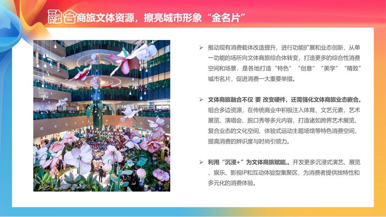 《報(bào)告》認(rèn)為,推動(dòng)現(xiàn)有消費(fèi)載體改造提升,進(jìn)行功能擴(kuò)展和業(yè)態(tài)創(chuàng)新,從單一功能的場(chǎng)所向文體商旅綜合體轉(zhuǎn)變,打造更多的綜合性消費(fèi)空間和場(chǎng)景,是各地打造“特色”“創(chuàng)意”“美學(xué)”“精致”城市名片,促進(jìn)消費(fèi)一大重要舉措。
