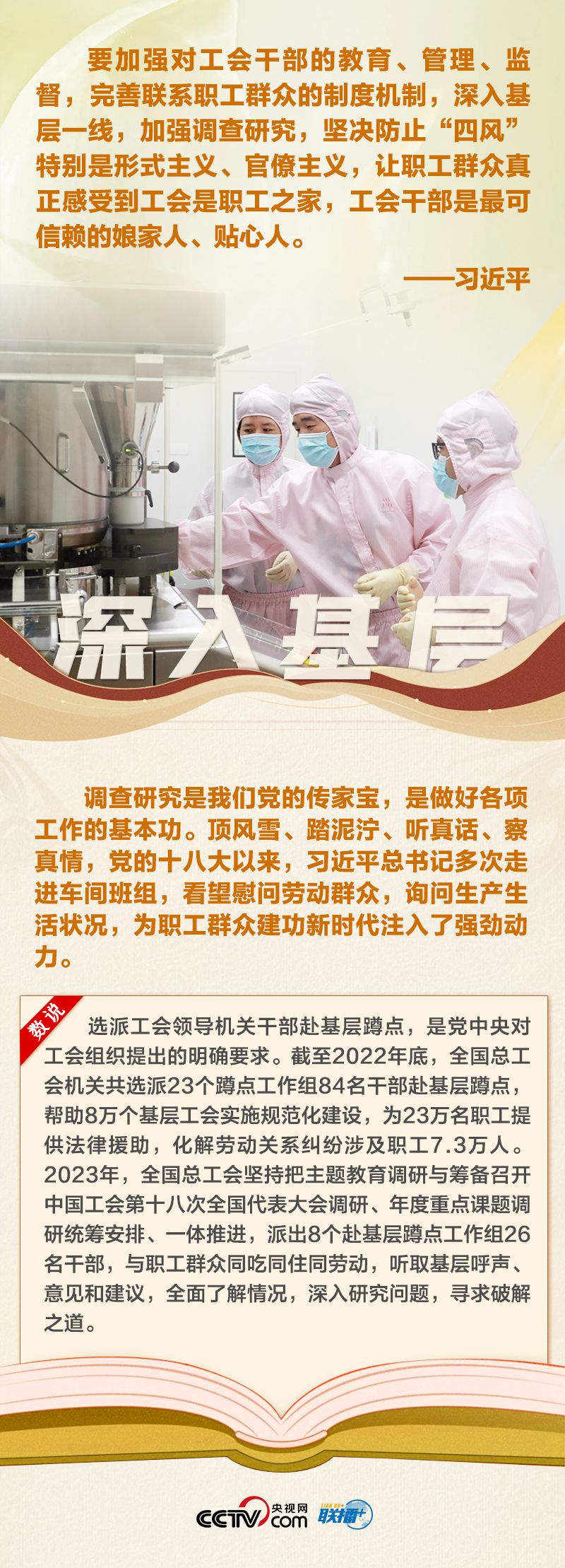 工人階級是我們黨最堅實最可靠的階級基礎,工運事業(yè)是黨的事業(yè)的重要組成部分,工會工作是黨治國理政的一項經(jīng)常性、基礎性工作。黨的十八大以來,習近平總書記多次出席勞動者活動,同普通工人談心,給勞?;匦?,為廣大勞動群眾煥發(fā)工人階級主人翁精神注入強勁動力。