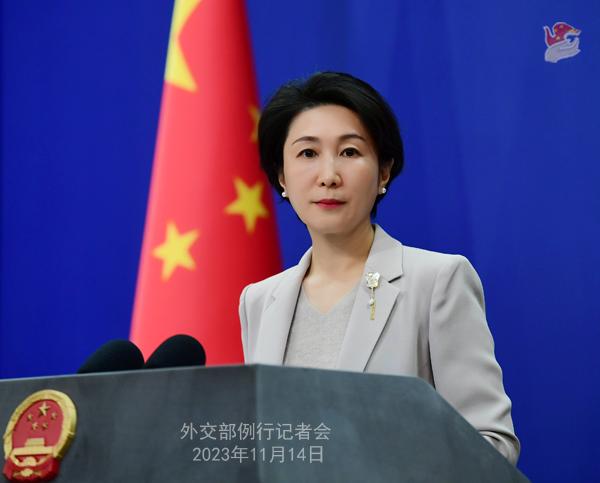 中新網(wǎng)北京11月14日電 (謝雁冰 黃鈺欽)中國(guó)外交部發(fā)言人毛寧14日主持例行記者會(huì)。