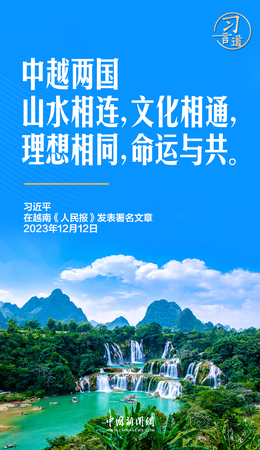 “共飲一江水,早相見、晚相望,清晨共聽雄雞高唱”,2015年11月,在訪越前夕,習近平在越南媒體發(fā)表的署名文章中,引用歌詞闡釋中越之間的山連山、水連水。
