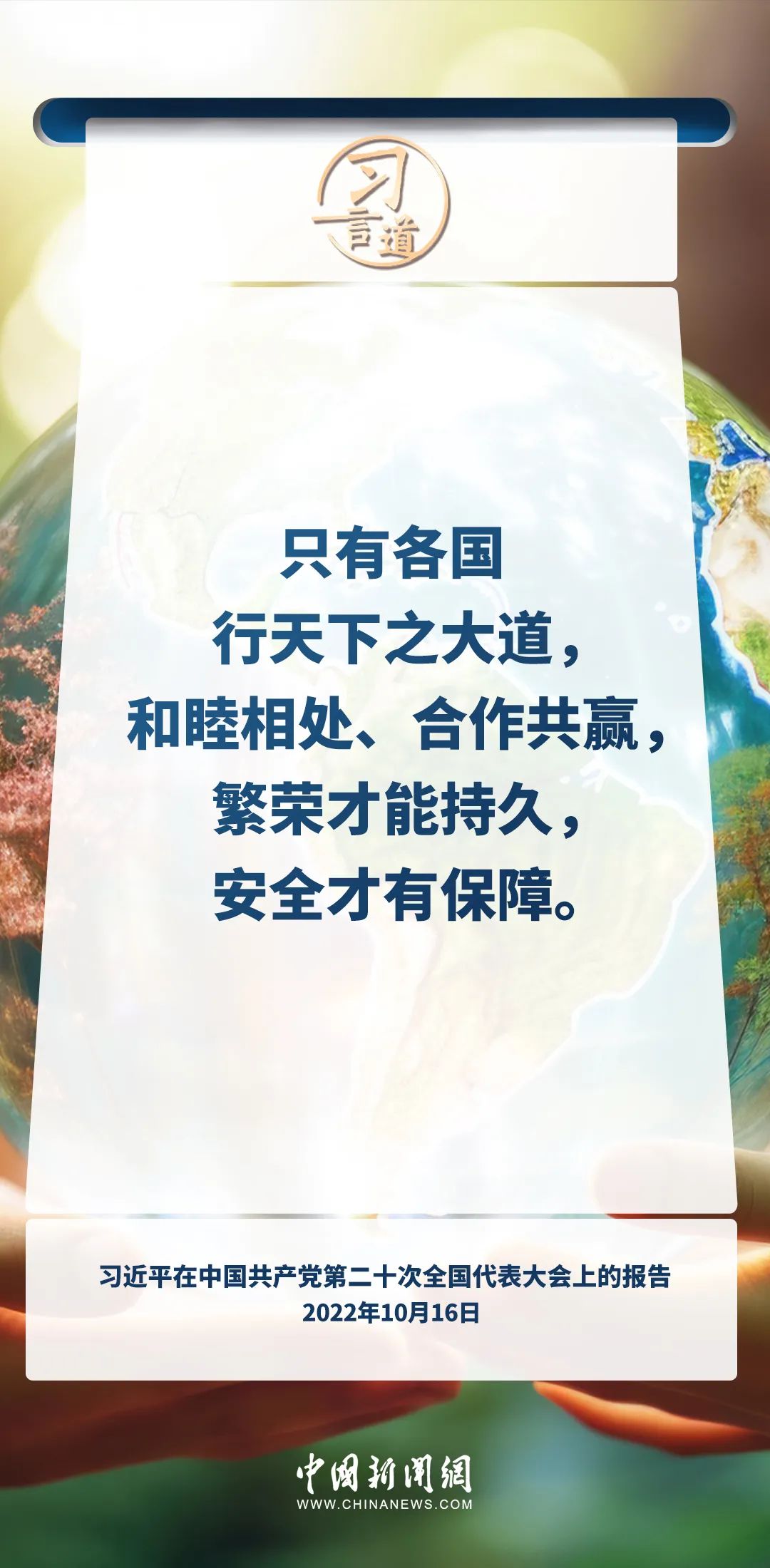 世界好,中國才會好;中國好,世界會更好。習近平主席在多個重要場合對人類命運共同體理念進行全面深刻論述,強調(diào)開放包容、合作共贏才是人間正道。