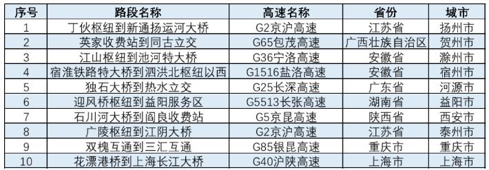 表 春節(jié)較繁忙服務(wù)區(qū) (全文圖表均來自交通運(yùn)輸部路網(wǎng)監(jiān)測(cè)與應(yīng)急處置中心官方微博)