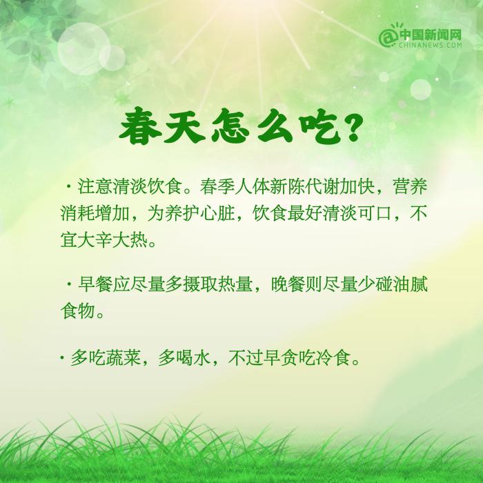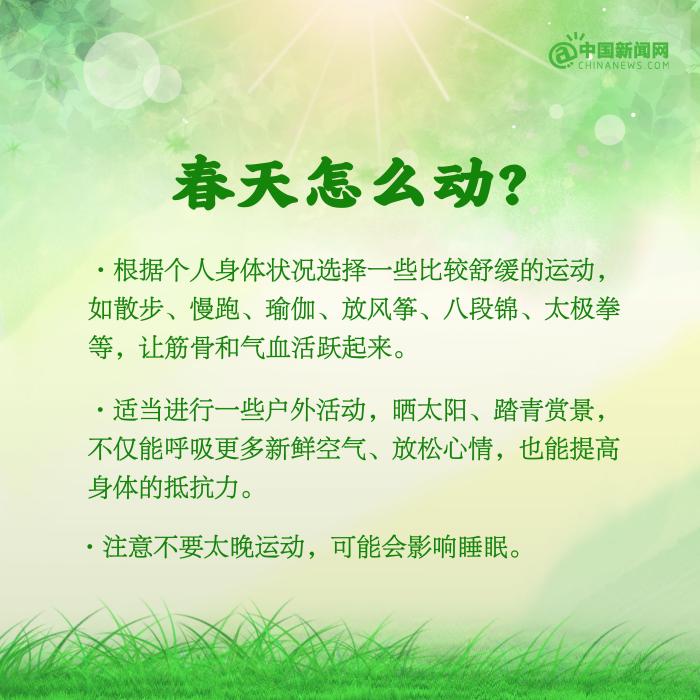 春天是萬物復(fù)蘇的季節(jié),也是調(diào)養(yǎng)身體的好時節(jié)。①每天保證6~8小時的睡眠,避免熬夜;②適當進行一些戶外活動,曬太陽、踏青賞景等;③不過早減衣,穿衣注意下厚上?。虎茏⒁馇宓嬍?,多吃蔬菜,多喝水……春季養(yǎng)生要注意什么?詳戳↓↓