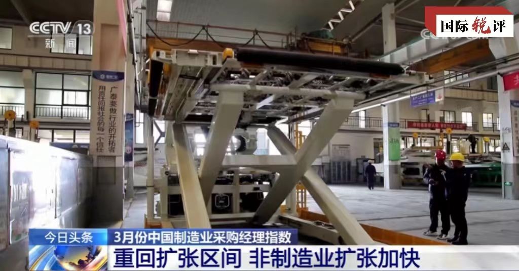 中國(guó)官方最新數(shù)據(jù)顯示,今年3月的PMI、非制造業(yè)商務(wù)活動(dòng)指數(shù)和綜合PMI產(chǎn)出指數(shù)分別為50.8%、53.0%和52.7%,比上月上升1.7、1.6和1.8個(gè)百分點(diǎn),均位于50%以上的擴(kuò)張區(qū)間。其中3月份制造業(yè)活動(dòng)出現(xiàn)半年來首次擴(kuò)張,并且創(chuàng)下一年來新高。對(duì)此,美國(guó)彭博社等外媒稱,這表明中國(guó)制造業(yè)前景趨于樂觀,整體經(jīng)濟(jì)正在企穩(wěn)。