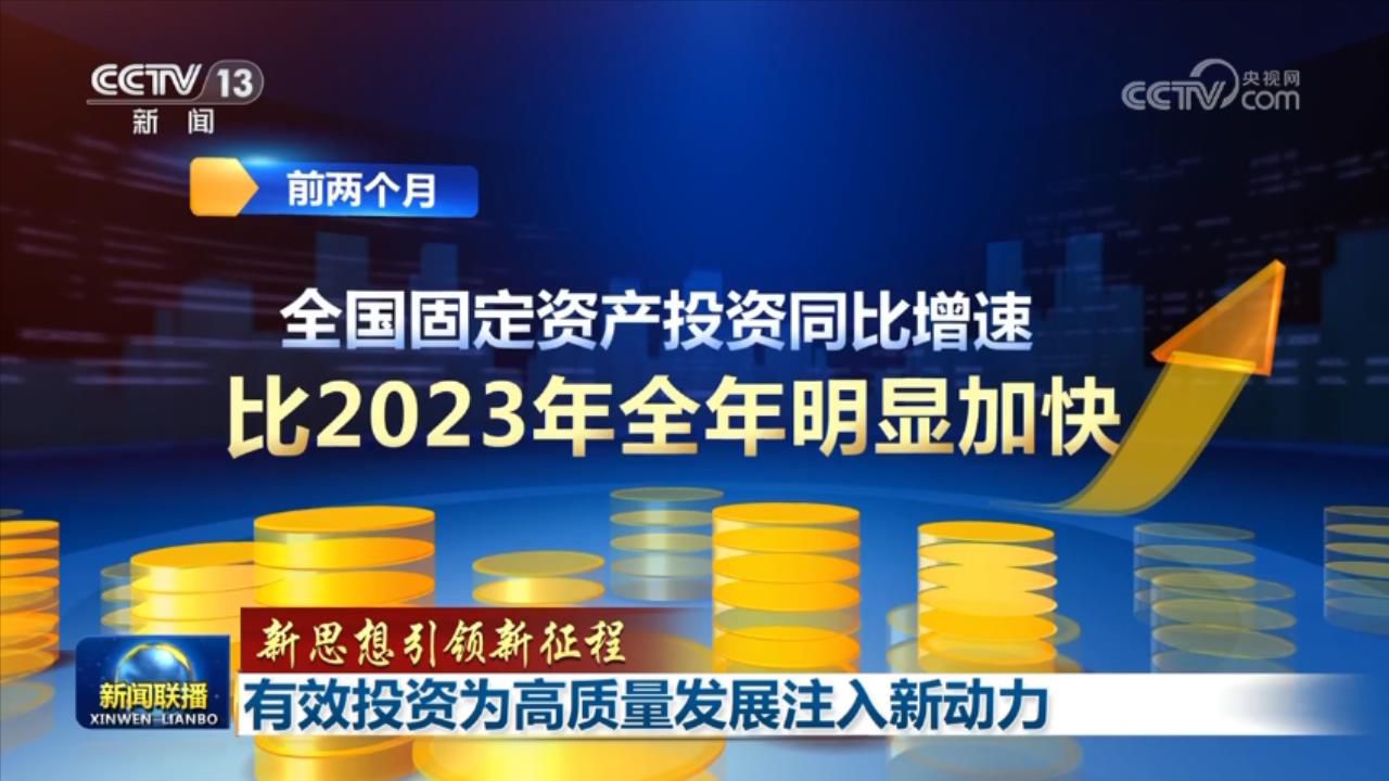 央視網(wǎng)消息(新聞聯(lián)播):習(xí)近平總書記強(qiáng)調(diào),要完善擴(kuò)大投資機(jī)制,拓展有效投資空間。今年開年以來,服務(wù)高質(zhì)量發(fā)展成為擴(kuò)大有效投資的重要著力點(diǎn),投資規(guī)模持續(xù)增長,投資結(jié)構(gòu)質(zhì)量持續(xù)提升,助力中國經(jīng)濟(jì)實(shí)現(xiàn)平穩(wěn)開局。