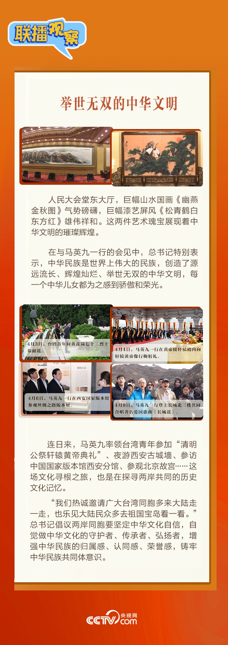 |聯(lián)播+| 4月10日下午,習(xí)近平總書(shū)記在北京人民大會(huì)堂會(huì)見(jiàn)馬英九一行。東大廳巨幅座屏前,習(xí)近平總書(shū)記與馬英九微笑握手。這是黨的二十大后,總書(shū)記首次會(huì)見(jiàn)臺(tái)灣同胞。