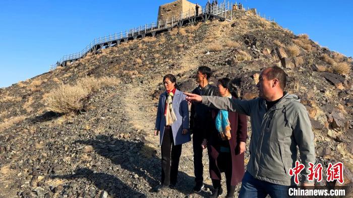 李世宗烈士孫子孫女一行在當年伊吾四十天保衛(wèi)戰(zhàn)戰(zhàn)斗發(fā)生地勝利峰?!⊥鹾?攝