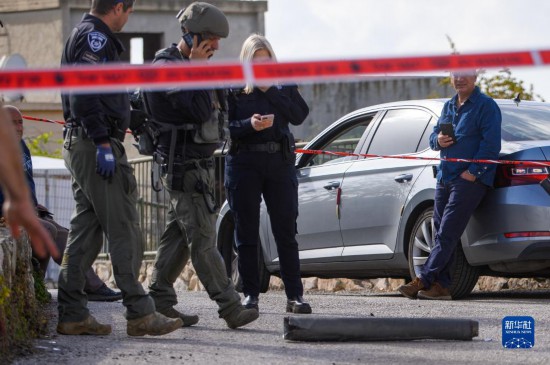 4月6日,在以色列北部的費蘇塔鎮(zhèn),安全人員檢查一枚火箭彈殘骸。新華社發(fā)(阿亞爾·馬戈林?jǐn)z/基尼圖片社)