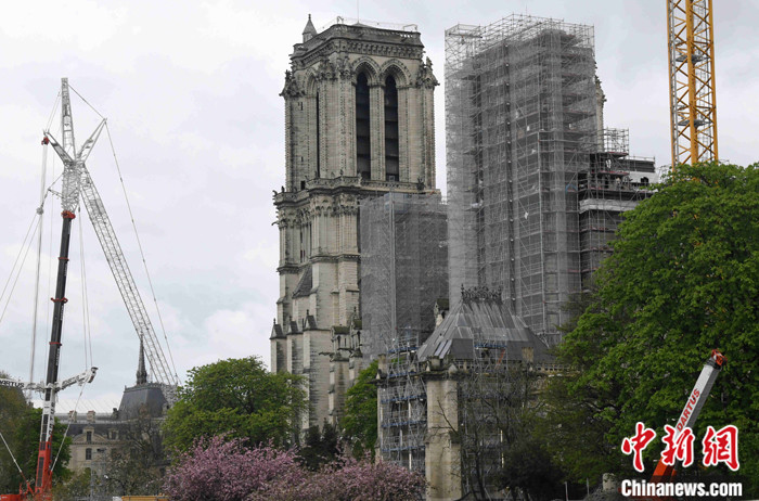 2023年4月15日是巴黎圣母院大火四周年。這座大教堂的修復工程仍在緊張進行。整個維修工程將于2024年完成,圣母院定于當年年底重新開放。 中新社記者 李洋 攝
