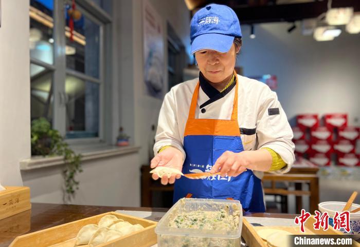 在山東煙臺一家水餃店,廚師在包鲅魚水餃?!≈行律缬浾?王嬌妮 攝