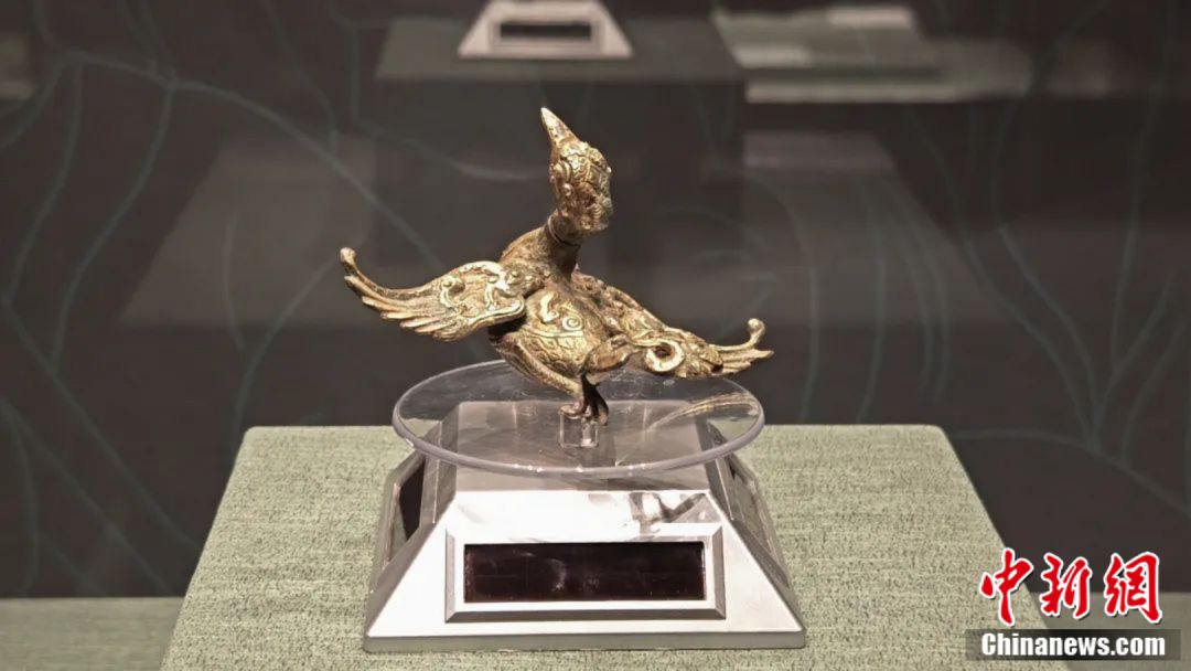 墓中出土的人首魚尾紋金飾片,人物脖頸飾后方飄浮的綬帶,都是典型的波斯薩珊王朝裝飾紋樣。