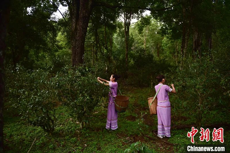 2016年5月,云南普洱,當(dāng)?shù)卮迕裨诰斑~山古茶園采茶,這里的茶樹樹齡大多在百年以上。劉冉陽(yáng) 攝