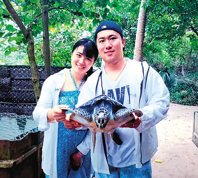 許振軒(右)與李丹宜在斯里蘭卡體驗(yàn)了一場特殊的“海龜保育義工之旅”。