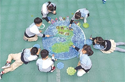 日前,浙江省臺(tái)州市仙居縣實(shí)驗(yàn)幼兒園舉行“世界地球日”主題教育活動(dòng),通過手繪地球等環(huán)節(jié)引導(dǎo)孩子們從小樹立愛護(hù)地球、人與自然和諧共生的理念。圖為孩子們?cè)凇笆掷L地球”。