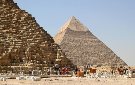 5月1日,游客在埃及吉薩金字塔群景區(qū)游覽。(新華社記者隋先凱攝)