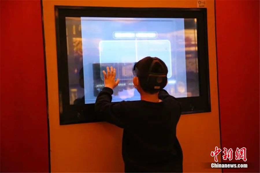 新疆哈密市小朋友利用MR眼鏡對彌勒會見記進行參觀體驗。新疆哈密市博物館 供圖