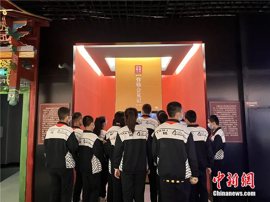 運用現代科技手段展示的彌勒會見記受到學生的關注和喜愛。新疆哈密市博物館 供圖