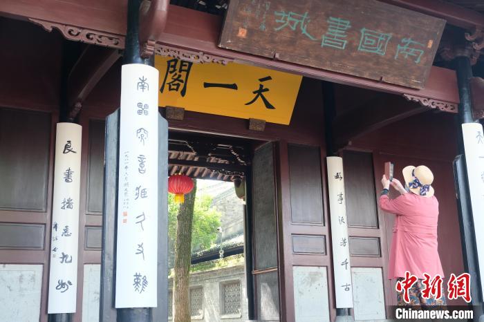 5月9日,游客拍攝天一閣照片?!≈行律缬浾?林波 攝