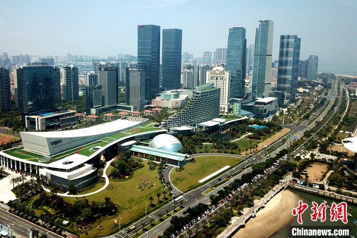 資料圖為航拍廈門國際會展及金融中心。(無人機照片) 中新社記者 王東明 攝