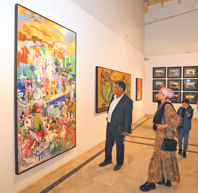 人們在埃及首都開羅參觀“藝匯絲路——中阿知名藝術(shù)家采風(fēng)作品展”。