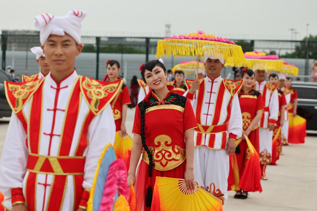 記者在西安咸陽國際機場看到,17日中午,由190人組成的表演團隊已經準備就緒。當地民眾將以熱情的腰鼓、歡快的秧歌等民間藝術表演,歡迎來自中亞國家的貴賓。