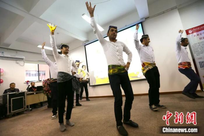 2016年,首屆“絲綢之路文化使者”特訓(xùn)營(yíng)在西安啟動(dòng)。圖為來自烏茲別克斯坦的留學(xué)生在啟動(dòng)儀式上表演舞蹈。張遠(yuǎn) 攝