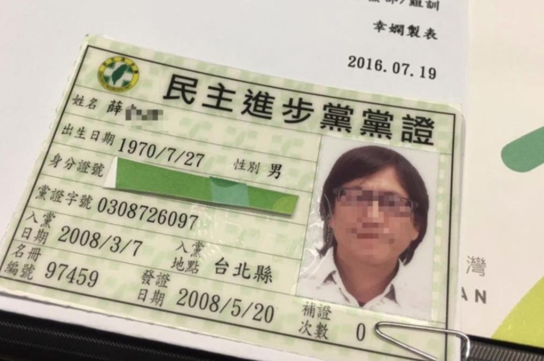被指涉性騷擾案、且與民進黨高層關系密切的導演“輝哥”,被網(wǎng)友曬出其民進黨黨證。圖片來源:聯(lián)合新聞網(wǎng) 翻拍自該導演臉書。