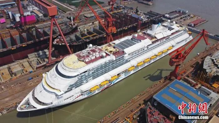 看,這艘身系“敦煌飛天彩帶”楚楚動人的我國首艘國產大型郵輪“愛達·魔都”號,今日盛裝出塢!