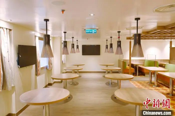 船上的員工餐廳已經裝修完畢。殷立勤 攝