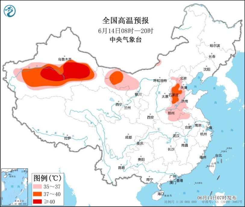 昨天,新疆中南部、內(nèi)蒙古西部、廣東中部等地出現(xiàn)35℃以上高溫天氣,新疆吐魯番局地40~42.9℃。未來三天,華北東部、黃淮及新疆、甘肅西部、內(nèi)蒙古西部等地部分地區(qū)有35~39℃的高溫天氣,新疆吐魯番等地最高氣溫將超過40℃。氣象專家提醒,北方地區(qū)暑氣大漲,天氣炎熱,老人、小孩或體質(zhì)較弱人群應(yīng)盡量避免午后高溫時段外出,同時注意避暑防曬,做好補(bǔ)水降溫的工作。