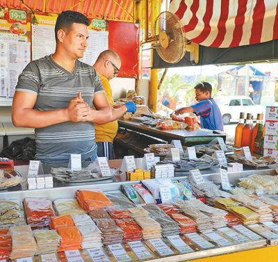 古巴首都哈瓦那一個(gè)市場(chǎng)內(nèi),商販正在等待顧客前來購買調(diào)料。
