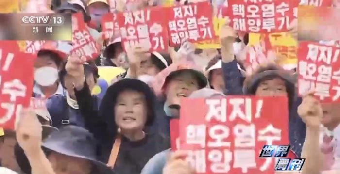 同一天,在日本駐濟(jì)州總領(lǐng)事館前,來自濟(jì)州自治道漁業(yè)和農(nóng)業(yè)團(tuán)體約2000多人集會(huì)抗議,譴責(zé)日本將福島核電站核污染水排放入海。