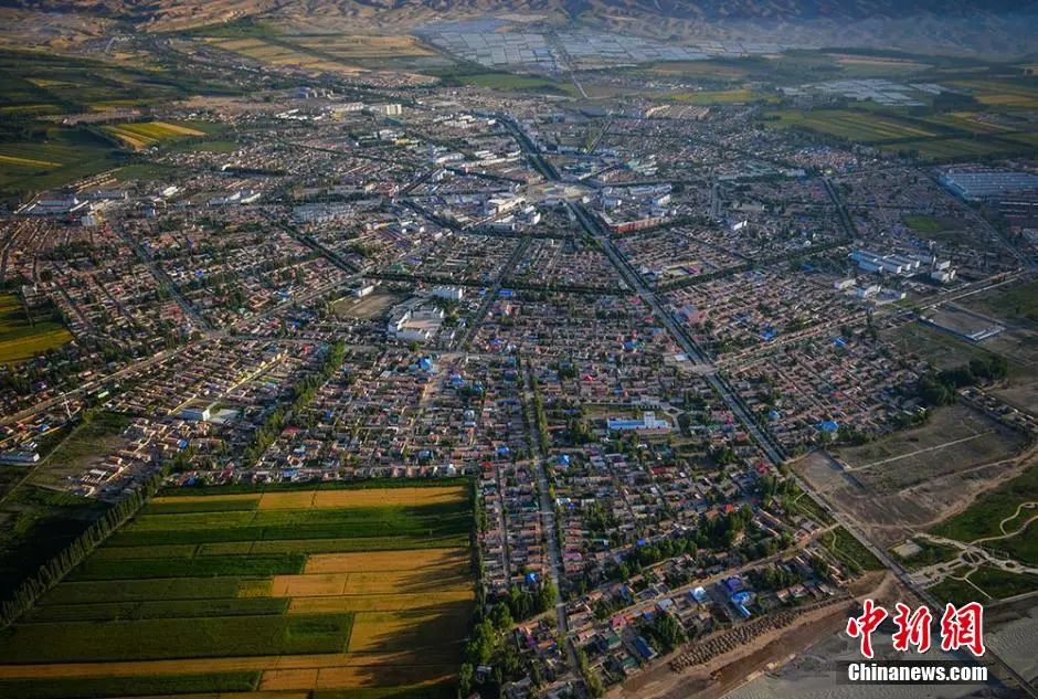 從空中俯拍世界最大規(guī)模的八卦城。據(jù)介紹,特克斯縣根據(jù)《周易》八卦“后天圖”方位設(shè)計(jì)建成,路路相通,街街相連,有著神奇迷宮般的街道布局,是現(xiàn)今世界上唯一一座保存良好、卦爻完整、規(guī)模最大的八卦城。劉新 攝