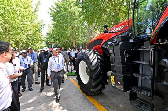 7月6日,駐華使節(jié)在國機集團中國農(nóng)機院參觀“東方紅”拖拉機。新華社記者 李鑫 攝