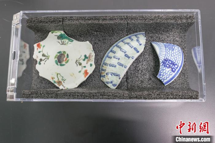 圖為來自清代晚期木質(zhì)沉船“長江口二號”的瓷片。中新社記者 劉力鑫 攝