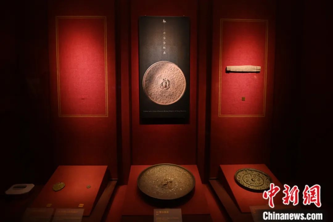 在甘肅省博物館展出的東羅馬鎏金銀盤等文物。李亞龍 攝