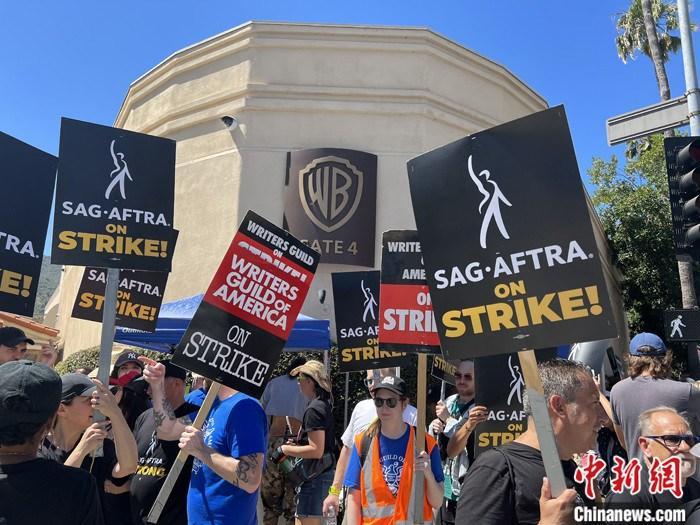 擁有約16萬名會(huì)員的好萊塢三大工會(huì)之一美國影視演員協(xié)會(huì)(SAG-AFTRA)發(fā)起罷工,于14日起在洛杉磯和紐約的十余家制片公司外示威游行。 中新社記者 張朔 攝