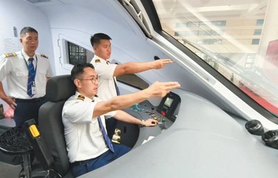 4月13日,在老撾萬(wàn)象站,中老雙方司機(jī)在首列萬(wàn)象至昆明的中老鐵路國(guó)際旅客列車上為發(fā)車做準(zhǔn)備。