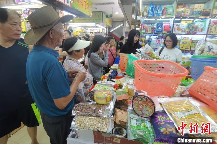 近日,東興國門景區(qū)里的東南亞特產(chǎn)商鋪受游客青睞?!≈行律缬浾?翟李強(qiáng) 攝
