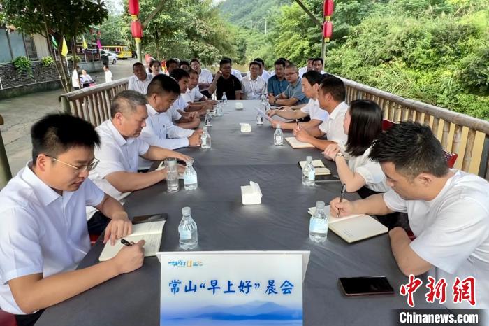 7月23日,“早上好”晨會(huì)在浙江省衢州市常山縣田蓬村召開。中新社記者董易鑫攝